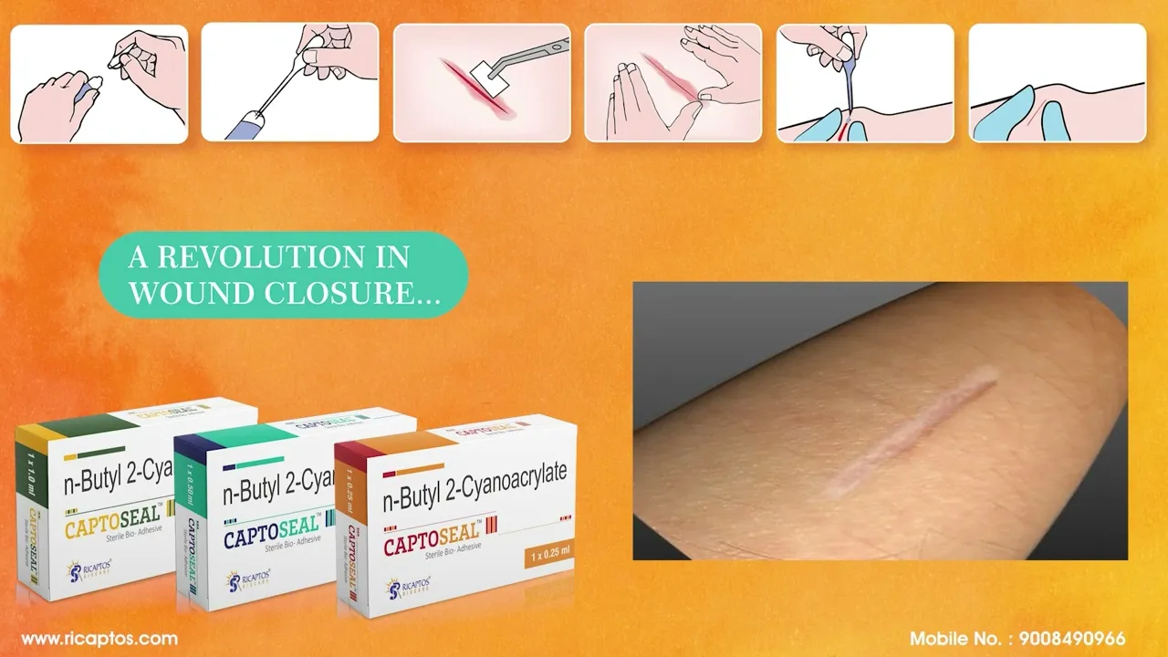 CAPTOSEAL (n-Butyl 2-Cyanoacrylate Bio-Adhesive) Glue , 0.25ml, 0.50ml and 1 ml. Skin Adhesive